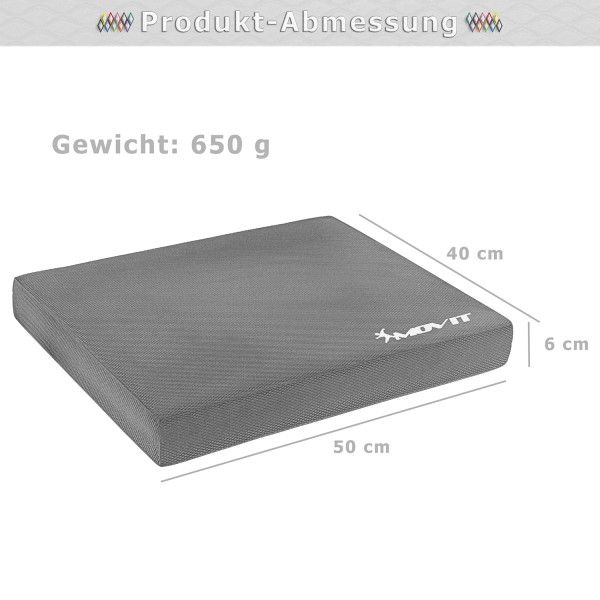 Koordinačná podložka MOVIT, balančný vankúš, vratký vankúš pre koordináciu a posilňovanie, ktorý je šetrný ku kĺbom. Mäkká, nestabilná základňa je vyrobená z peny a pri pôsobení tlaku sa podá. To kladie nároky na celé telo, napr. s nohami na podložke musí celé telo neustále vyrovnávať nestabilný povrch, aby bola dodržaná rovnováha. Balančné vankúše sa veľmi často používajú pri rehabilitácii k obnove svalov po nehode alebo operácii. Cvičenie na nestabilnom povrchu kladie nároky na pocit rovnováhy a zlepšuje koordináciu. Vďaka neustálemu balansovaniu sú využité hlboko uložené svaly, čo pomáha predchádzať zraneniam pri posilňovaní podporných svalov. S priloženou fitness páskou vyrobenou z vysoko kvalitného latexu môžete cvičiť mnoho ďalších cvičení: pilates, drepy, výpady, mosty, výkopy atď. Tým trénujete Vaše sedacie svalstvo, stehná, nohy a brušné svaly spôsobom, ktorý je obzvlášť šetrný ku kĺbom. Silový tréning bol včera - funkčný tréning je dnes! Zlepšite svoju koordináciu, motoriku, kondíciu a silu pomocou tejto inovatívnej tréningovej metódy. Trénujte celistvé pohyby a precvičte hlboké svalové reťazce pomocou balansovania na balančnej podložke MOVIT.