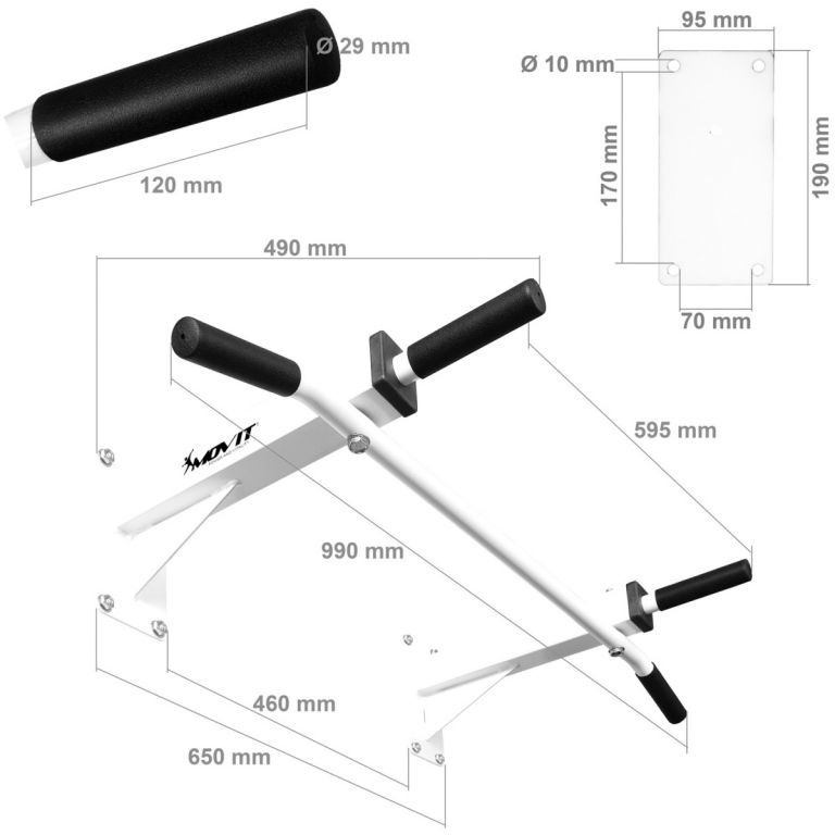 S Movit profesionálnou hrazdou na pripevnenie na stenu môžete vykonávať mnoho rôznych cvikov na posilnenie svalstva rúk, ramien, brucha a chrbta.