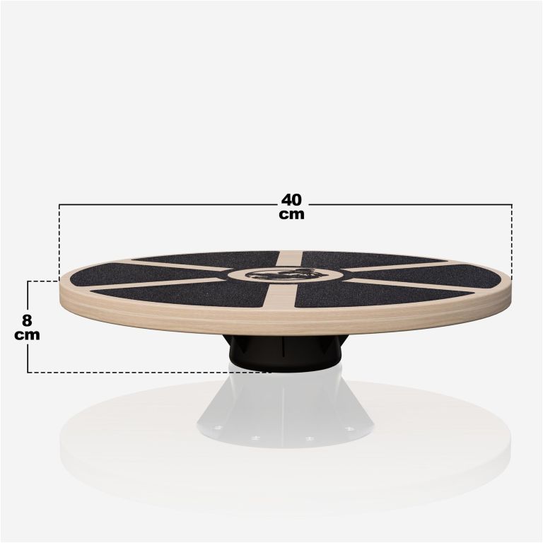 Drevené prevedenie dosky s priemerom 40 cm je odolné a unesie až 180 kg. Protišmykový povrch zaisťuje bezpečné používanie aj na hladkých podlahách. Vďaka výške 8 cm poskytuje optimálny rozsah pohybu na posilnenie hlbokého stabilizačného systému. Výborne sa hodí pre domáci tréning, rehabilitáciu alebo ako súčasť tréningovej rutiny vo fitness centre.