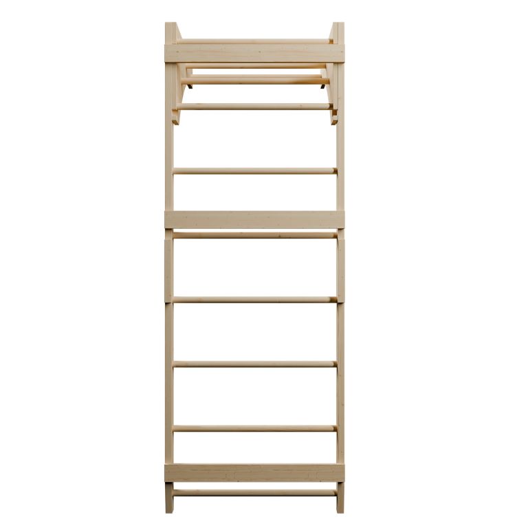 Rebriny sú vyrobené z kvalitného bukového dreva a vďaka nosnosti 170 kg sa hodia nielen pre deti a tínedžerov, ale aj pre dospelých. Integrovaná hrazda rozširuje možnosti tréningu o cviky na posilnenie rúk, chrbta aj brucha. Montáž k stene je jednoduchá a výsledkom je pevné a dlhodobo odolné športové vybavenie, ktoré prinesie úžitok celej rodine.