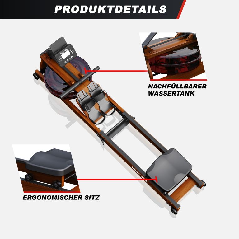 Užite si tréning, ktorý prirodzene spája silu, vytrvalosť a eleganciu. Tento drevený veslovací trenažér s vodným odporom vám poskytne autentický zážitok ako pri skutočnom veslovaní. Vďaka 6-stupňovej vodnej záťaži, ktorá sa automaticky prispôsobuje vašej intenzite, môžete trénovať vo svojom tempe a zároveň šetriť kĺby. Ergonomické sedadlo a nastaviteľné opierky nôh zaistia maximálne pohodlie počas každej jazdy.