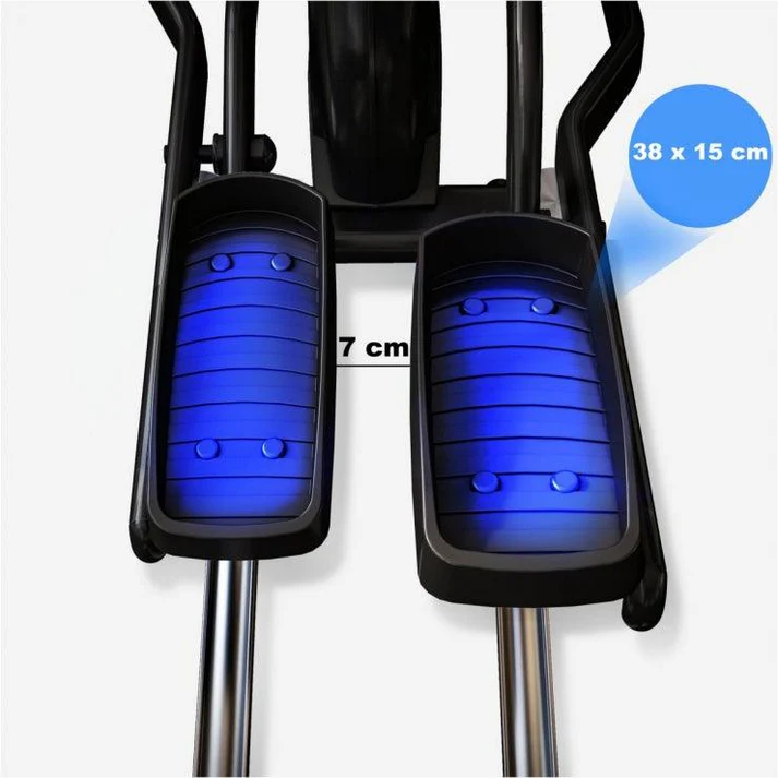 Srdcom stroja je robustný zotrvačník s hmotnosťou 25 kg a 16 úrovní odporu s magnetickým brzdným systémom – ideálny na intenzívne domáce použitie. Krok je možné nastaviť v 5 polohách od 42 do 59 cm, čo umožňuje maximálne prispôsobenie výške postavy aj tréningovým cieľom. Displej zobrazuje kľúčové údaje vrátane wattov a tepovej frekvencie, Bluetooth konektivita zaisťuje napojenie na aplikácie. Pevná konštrukcia unesie až 160 kg, transportné kolieska uľahčia presun. Skvelá voľba pre každého, kto nechce kompromisy.