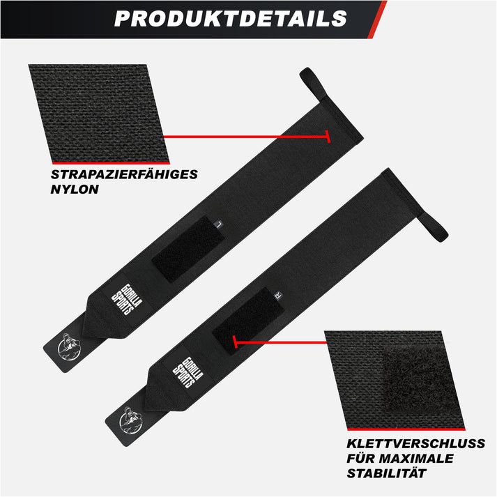 Gorilla Sports bandáže na zápästie 45×8 cm, čierna, 2 ks