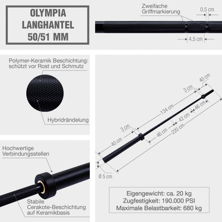 Táto činková tyč je vhodná pre začiatočníkov aj pokročilých užívateľov. Robustné ložisko čapu a tenký povrchový náter na masívnej oceli zaisťujú vysokú stabilitu a odolnosť. Tento náterový systém je založený na keramickej báze a je využívaný najmä v technológii strelných zbraní vďaka svojej odolnosti proti oderu, tvrdosti a priľnavosti. Robustný otočný kĺb z vysoko kvalitnej medi zaistí lepšie vyváženie činky, vrúbkovanie zase pevný úchop. Začínajte s nízkou hmotnosťou a priebežne ju zvyšujete. Majte na pamäti, že technika je vždy prednejšia ako hmotnosť.