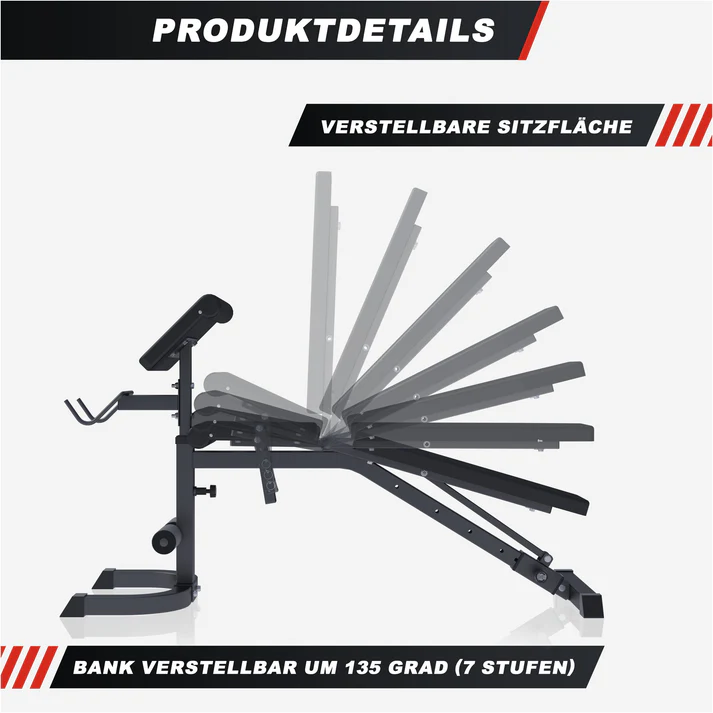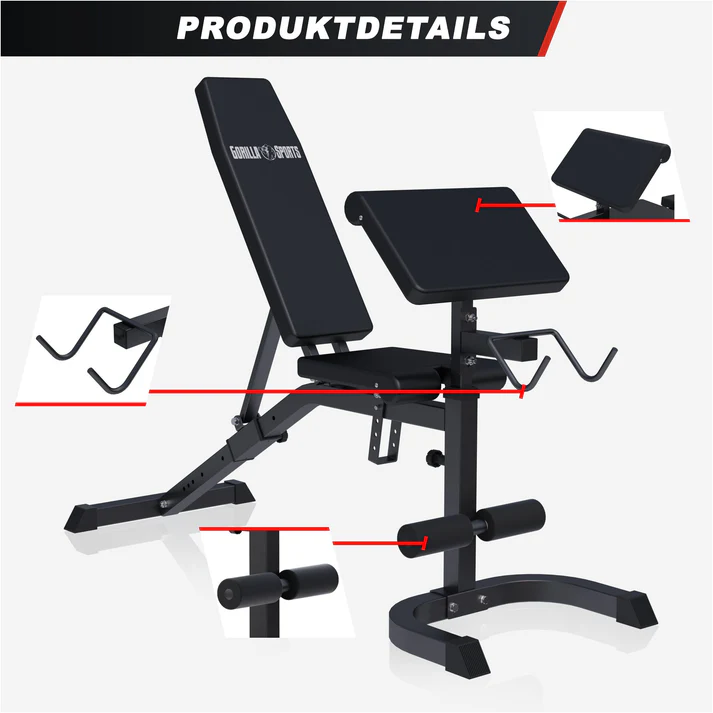 Táto nastaviteľná lavica s curlpultom od Gorilla Sports je ideálnym základom pre intenzívny domáci tréning. Vďaka 7 polohám opierky chrbta a 4 úrovniam nastavenia sedadla umožňuje presné prispôsobenie každému cviku – vrátane tréningu brucha vďaka možnosti negatívneho sklonu. Prepracovaný dizajn kombinuje pevnú konštrukciu s pohodlným čalúnením a podporuje efektívne a bezpečné posilňovanie rôznych svalových partií.