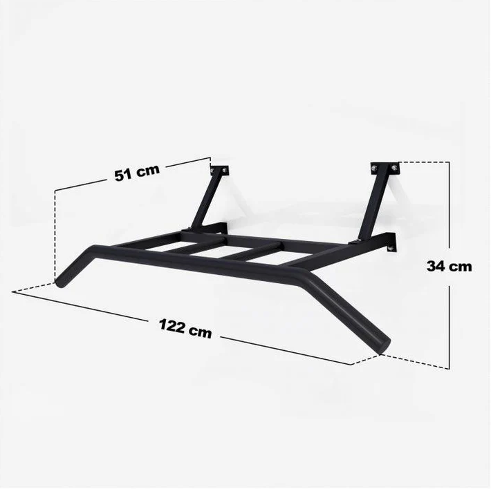 Príťahy sú právom považované za najvyššiu disciplínu medzi cvikmi s vlastnou váhou: žiadne iné cviky nie sú efektívnejšie, pokiaľ ide o budovanie širokého chrbta. S touto čiernou profesionálnou hrazdou máte na to ideálne zariadenie. Je určený pre montáž na stenu, má mimoriadne pevnú konštrukciu a je možné ho zaťažiť hmotnosťou až 150 kg. V závislosti od vašej telesnej hmotnosti vám to stále dáva priestor na tréning so záťažovou vestou.