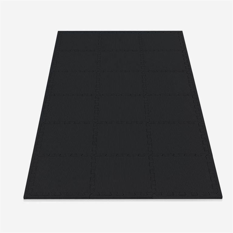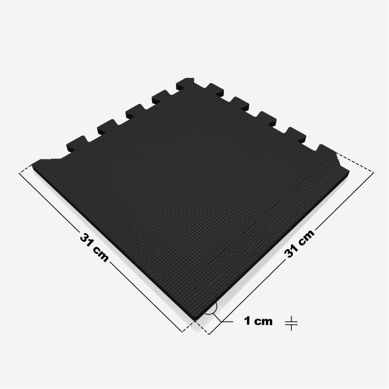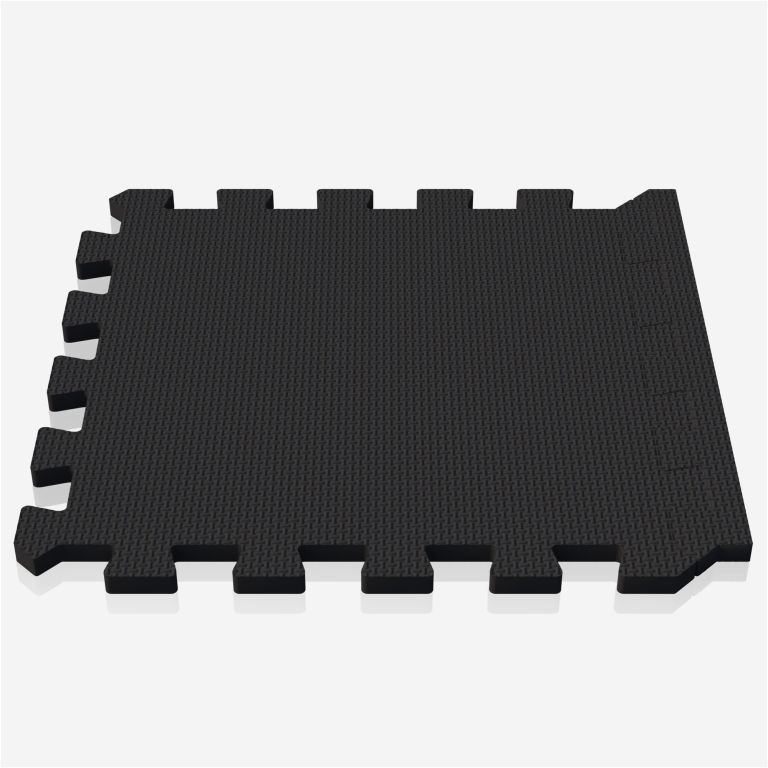 Fitness podložka v čiernej farbe chráni podlahu a tlmí hluk. Jednoduchá montáž, univerzálne použitie.