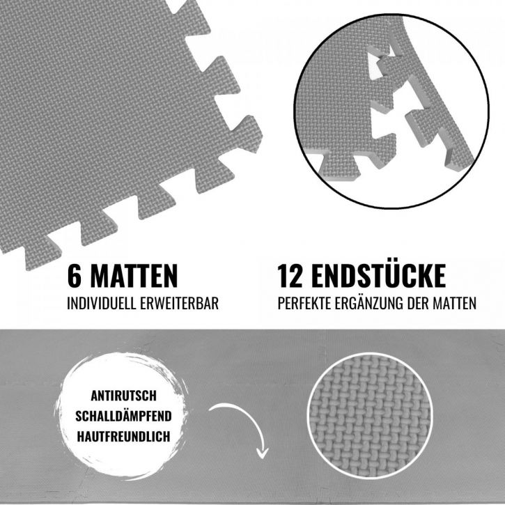 Sadu ochranných podložiek Gorilla Sports môžete zostaviť podľa svojich predstáv a pokryť nimi podlahu domácej posilňovne na veľkej ploche.