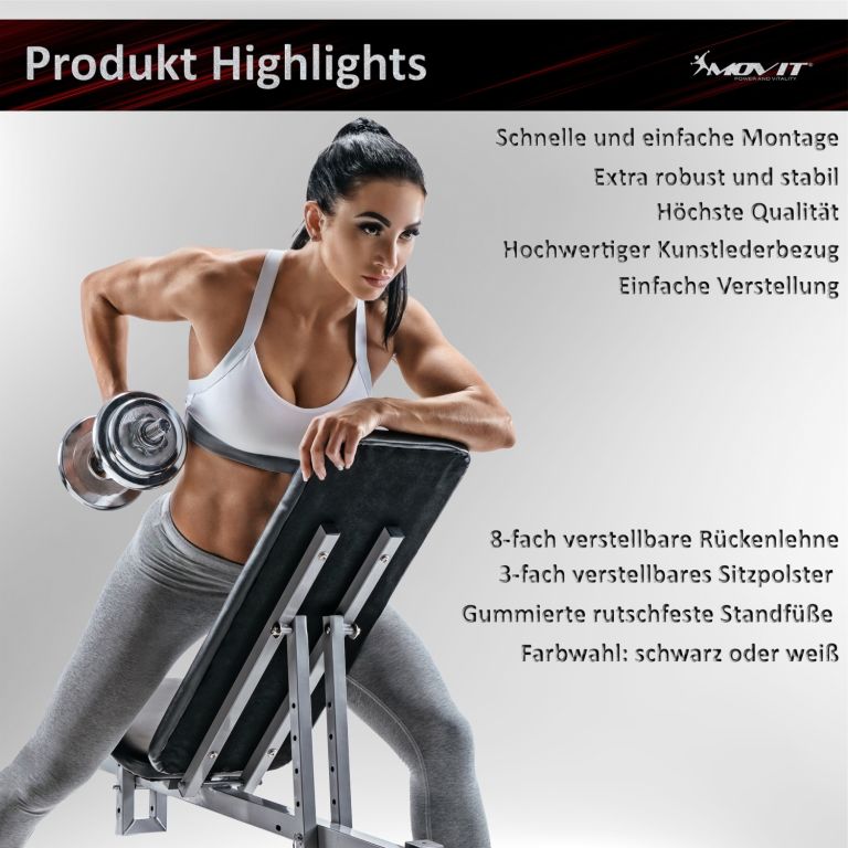 Veľkou výhodou tejto posilňovacej lavice je nastaviteľnosť operadla a sedadla. Môžete cvičiť v ľahu alebo v sede nielen veľké svalové skupiny, ale tiež často zabúdané pomocné svaly. Jeho stabilná oceľová konštrukcia a pevný stojan mu poskytujú ideálne podmienky. Vďaka malým rozmerom ho môžete ľahko umiestniť do domácej posilňovne a využívať efektívne a všestranné cvičenie celého tela.