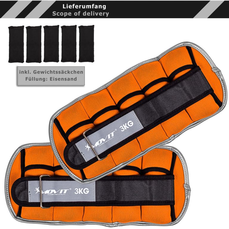 MOVIT Neoprénové reflexné záťažové manžety, 2x3 kg, oranžové
