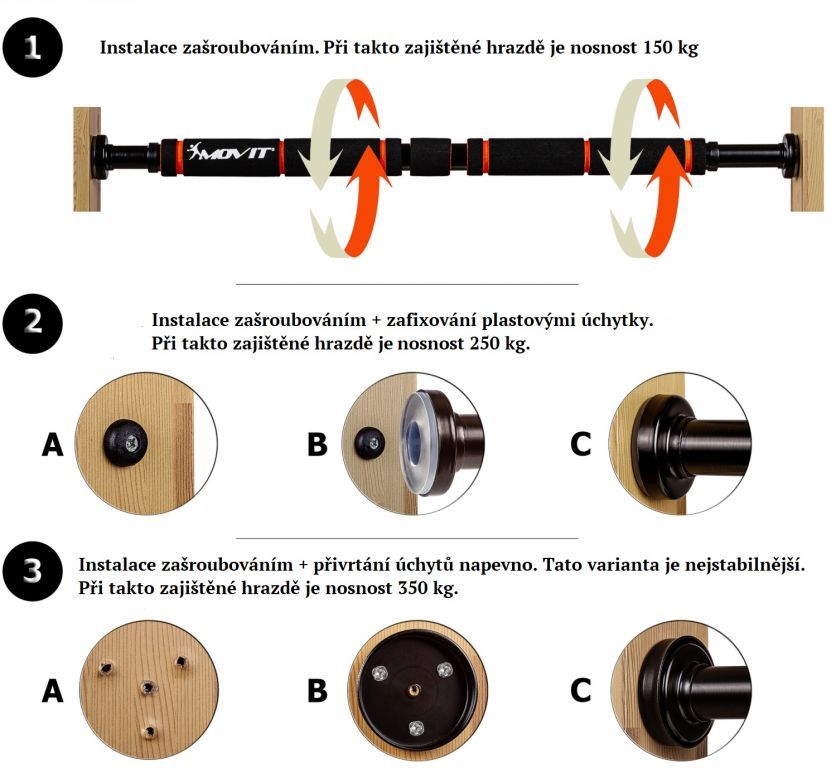 Ideálna na použitie doma i na cestách, pretože sa ľahko prenáša a kvôli pevnej inštalácii nie je nutné vŕtať - pre optimálny tréning hornej časti tela, najmä pre posilnenie svalov paží, brucha a chrbta.