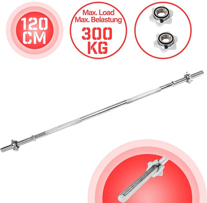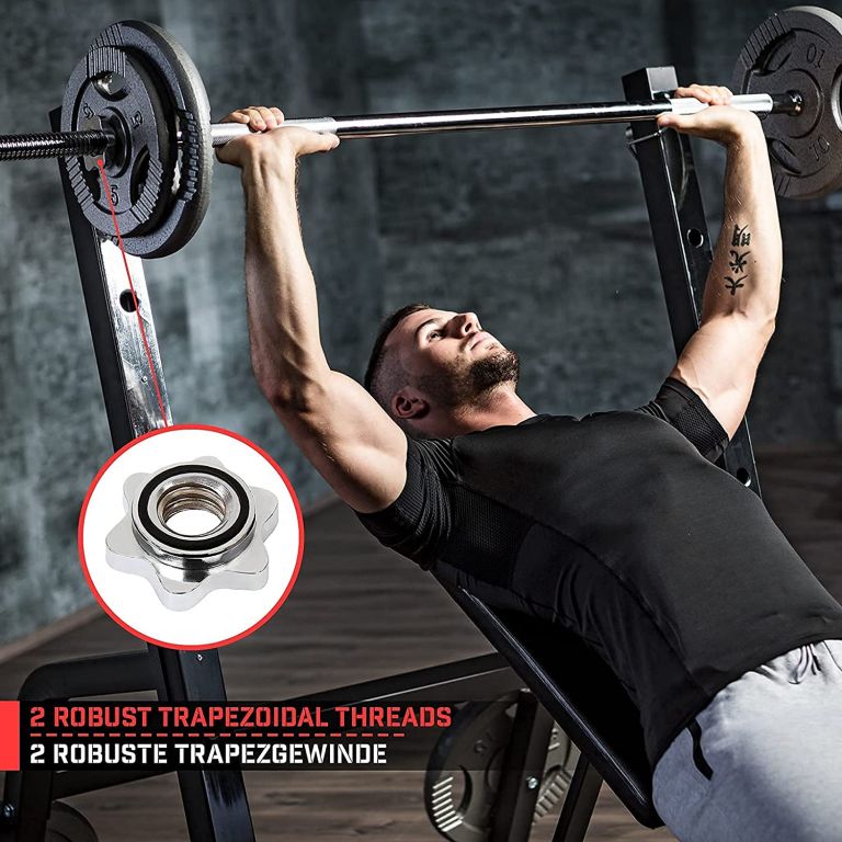 Tyč pre silový tréning umožňuje maximálne zaťaženie 300 kg kotúčov, ktoré sú pevne uzavreté hviezdicovými zámkami. Zdvíhacia tyč je vhodná pre všetky štandardné kotúče 30/31 mm. Dve 20 cm dlhé rukoväte na fitness tyči majú protišmykový povrch, ktorý zaisťuje, že Vám ruky z tyče neskĺznu.