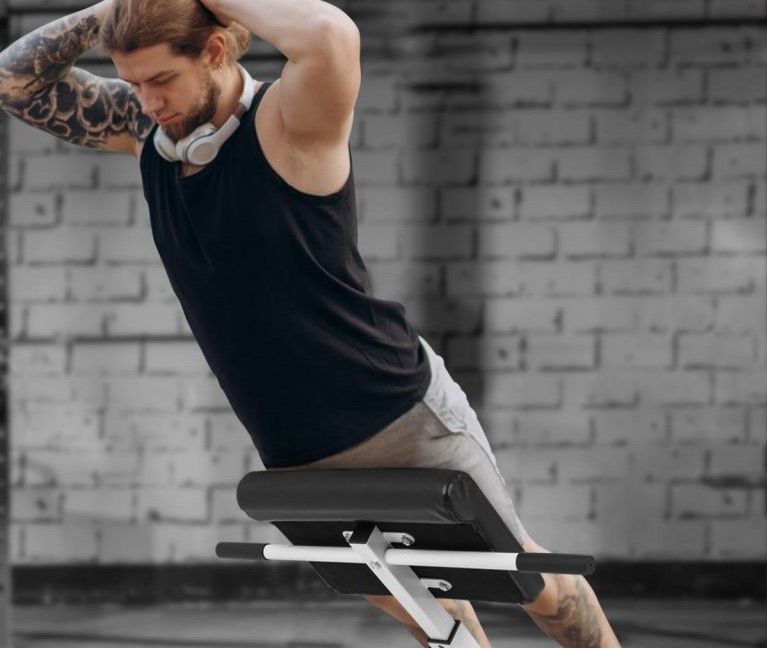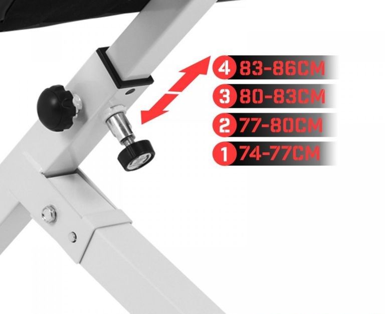Tento trenažér je skladací, a preto veľmi úsporný. Má práškovo lakovanú oceľovú konštrukciu. Jeho praktické oporné úchyty zaisťujú stabilitu. Polstrovaná a výškovo nastaviteľná fixácia nôh (penové valčeky s vysokou hustotou). Čalúnený a štyrikrát výškovo nastaviteľný chrbtový vankúš. Efektívne cvičenie vďaka uhlu 45 °. Bedrový vankúš výškovo nastaviteľný v štyroch polohách: 74 - 77 cm, 77 - 80 cm, 80 - 83 cm, 83 - 86 cm.