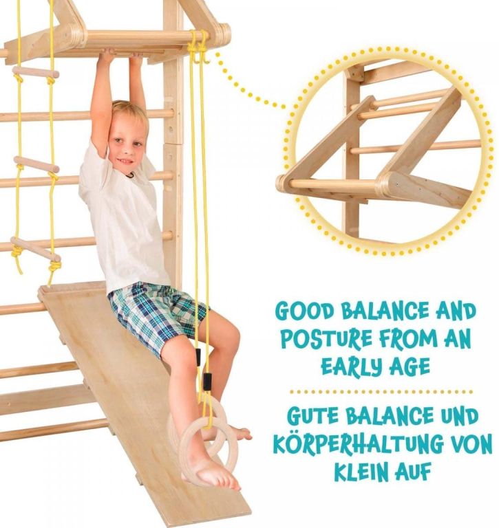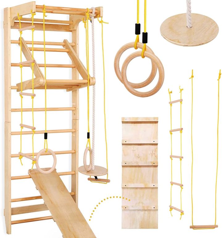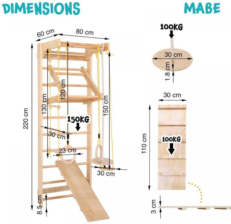 Rebriny s príslušenstvom je cvičebná stanica, ktorá je vhodná pre deti aj dospelých. Sada je vhodná pre deti od 3 rokov a pod stálym dohľadom dospelých. Rebriny sú ideálne na použitie doma, v škole a vo fitness štúdiu. Možno ich dokonca použiť ako pomôcku pri fyzioterapeutických ošetreniach.