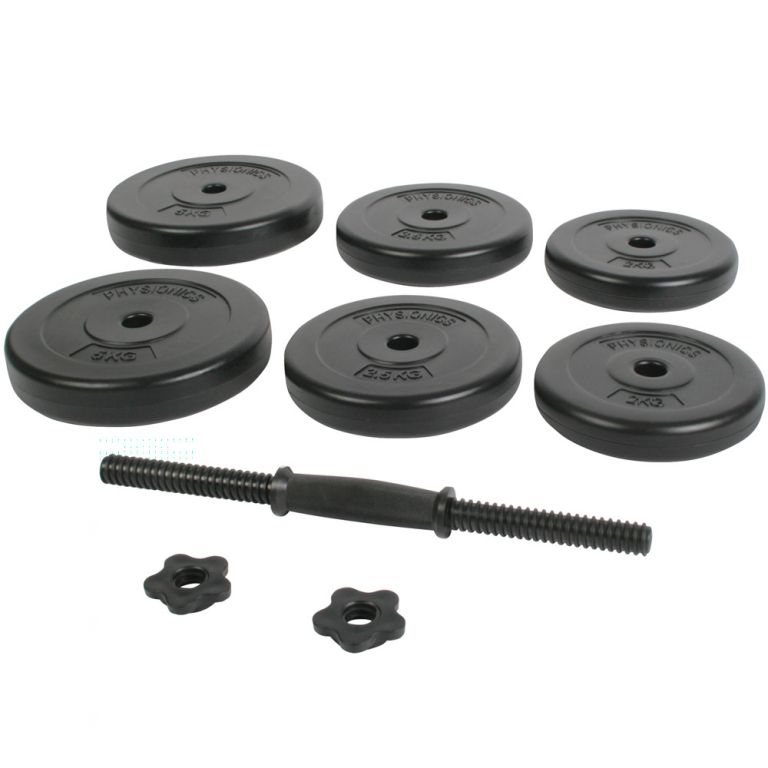Sada obsahuje ergonomicky tvarovanú činku, 6 záťažových dosiek a váži celkovo 20 kg. Činka má protišmykový rebrovaný úchopový povrch, takže sa počas tréningu môžete sústrediť na zdvíhanie závaží, zatiaľ čo hviezdicové zámky zaisťujú záťažové dosky.