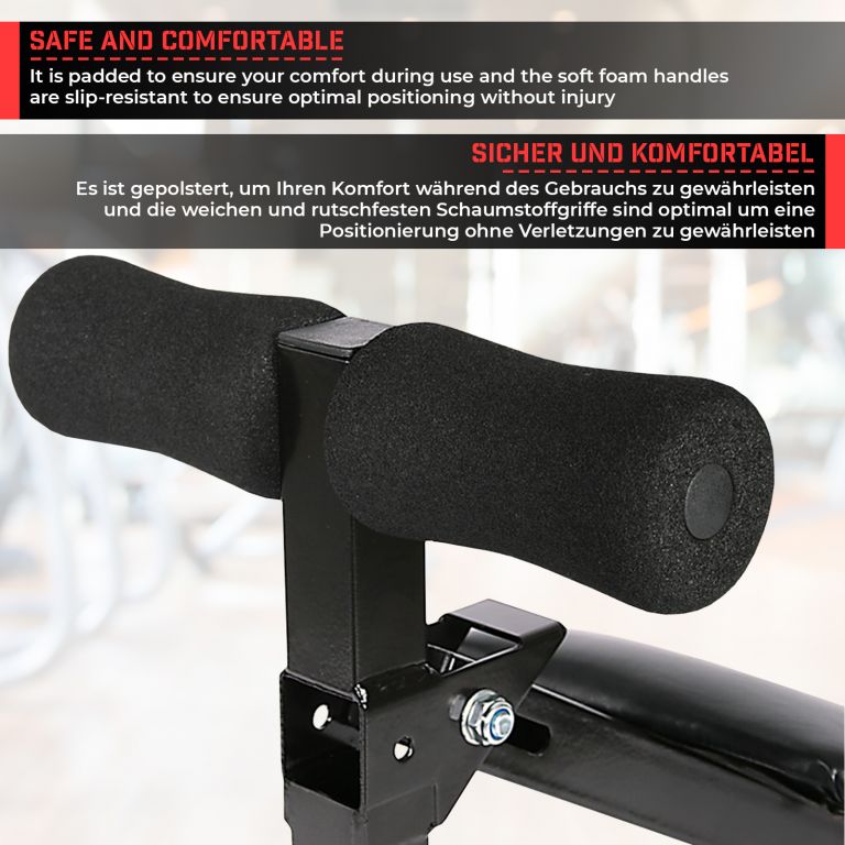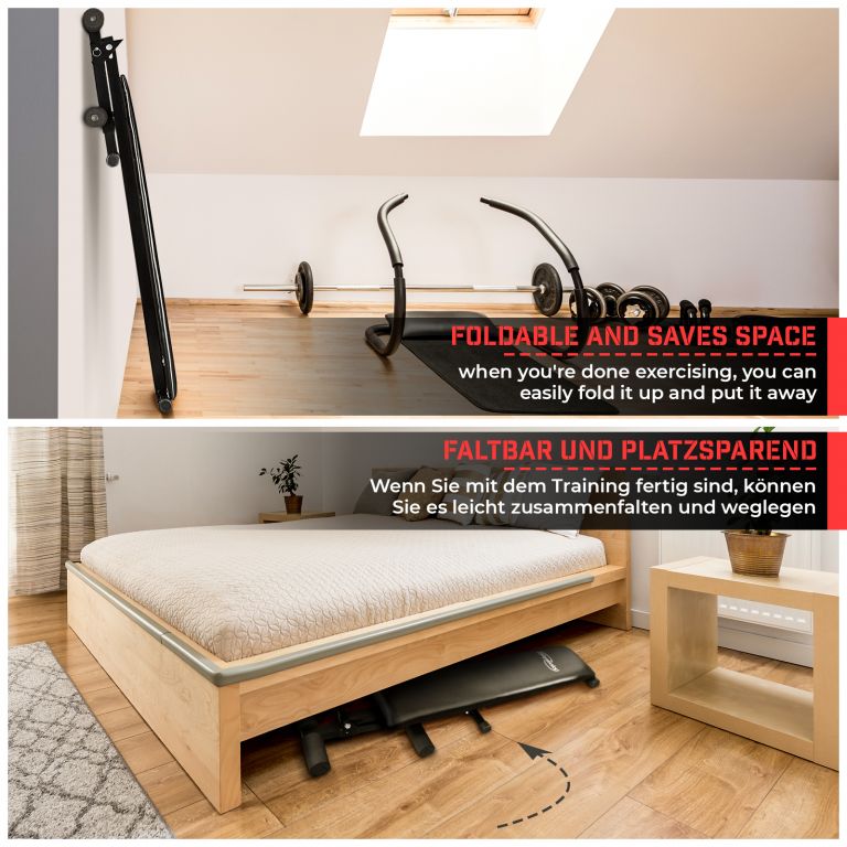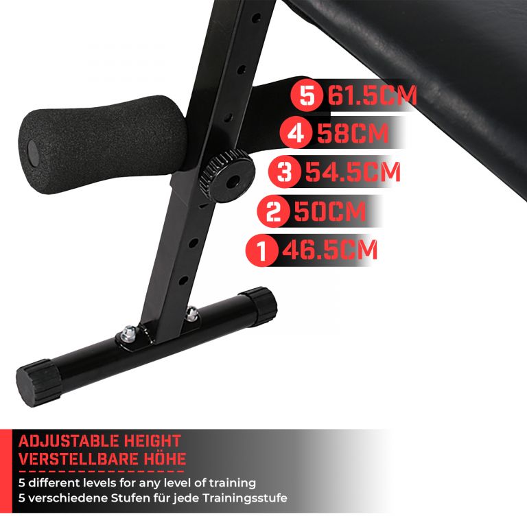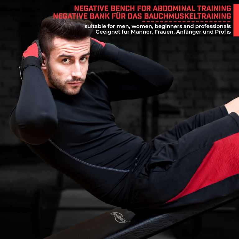 Táto šikmá lavička z ocele znesie zaťaženie až približne 100 kilogramov. Veľká plocha na ležanie je potiahnutá imitáciou kože a je mäkko polstrovaná. K fixácii nôh boli pripojené štyri protišmykové penové valčeky, ktoré poskytujú optimálnu oporu pre Vaše nohy. Ak chcete zvýšiť účinnosť cvičenia, upravte sklon sedacej lavice. Pokiaľ trenažér na cvičenie brušných svalov nepotrebujete, zložte ho a uložte, aby ste ušetrili miesto.