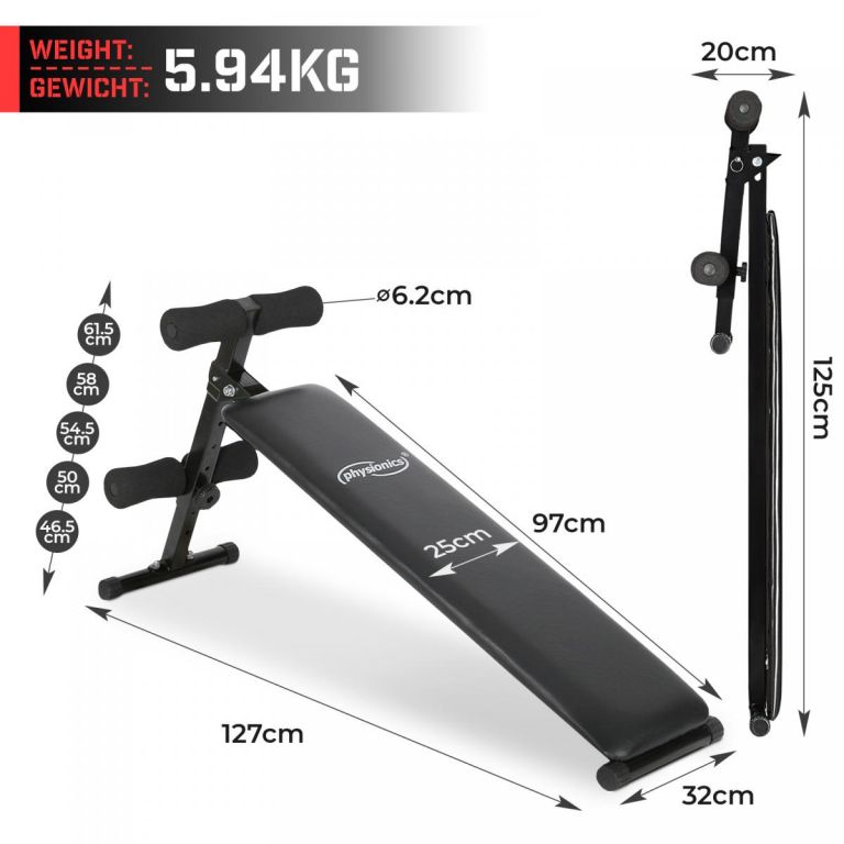 Physionics Šikmá lavica na posilňovanie, 32 x 123 x 63 cm