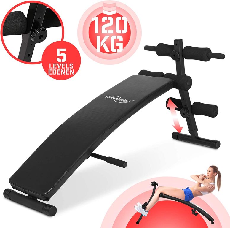 Ak chcete zvýšiť účinnosť cvičenia, upravte sklon lavičky Sit Up. Ak trenažér na cvičenie brušných svalov raz nepotrebujete, zložte ho a uložte, aby ste ušetrili miesto. Túto modernú tréningovú lavicu vyrobenú z ocele možno zaťažiť až približne 120 kg. Veľká plocha na ležanie bola potiahnutá imitáciou kože a je mäkko polstrovaná. K fixácii nôh sú pripojené štyri protišmykové penové valčeky, ktoré poskytujú optimálnu oporu pre vaše nohy.