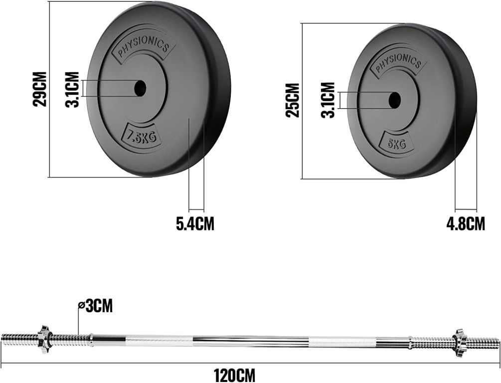 Zohľadnite svoje osobné ciele a schopnosti a prispôsobte túto sadu Vášmu tréningovému plánu. Dve 20 cm dlhé rukoväte na dlhej činke majú protišmykový povrch, ktorý zaisťuje, že sa Vaše ruky nešmýkajú z tyče. Záťažové kotúče sú naplnené cementom a sú vybavené odolným plastovým poťahom, ktorý nepoškodí podlahovú krytinu.