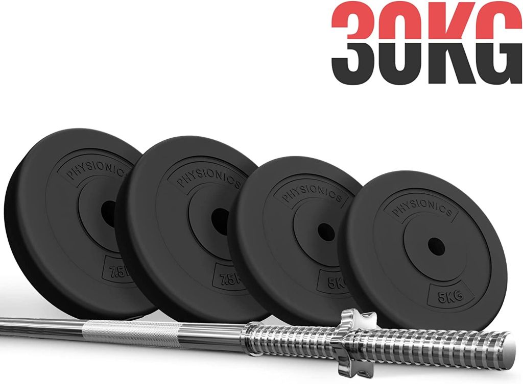 PHYSIONICS Vzpieračský set so závažím 120 cm, 30 kg