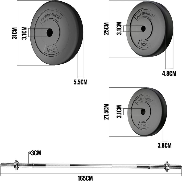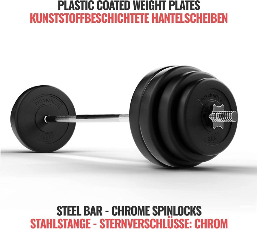 Zohľadnite svoje osobné ciele a schopnosti a prispôsobte túto sadu Vášmu tréningovému plánu. Dve 20 cm dlhé rukoväte na dlhej činke majú protišmykový povrch, ktorý zaisťuje, že sa Vaše ruky nešmýkajú z tyče. Záťažové kotúče sú naplnené cementom a sú vybavené odolným plastovým poťahom, ktorý nepoškodí podlahovú krytinu.