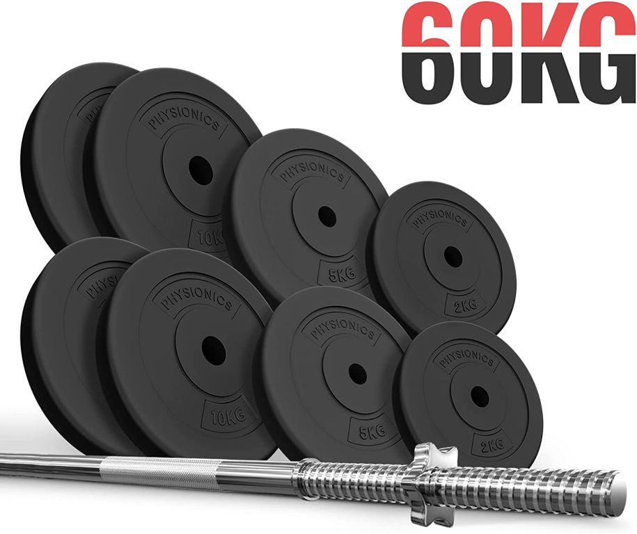 PHYSIONICS Vzpieračský set so závažím 165 cm, 60 kg