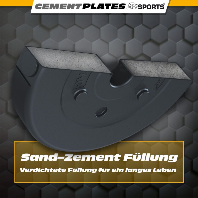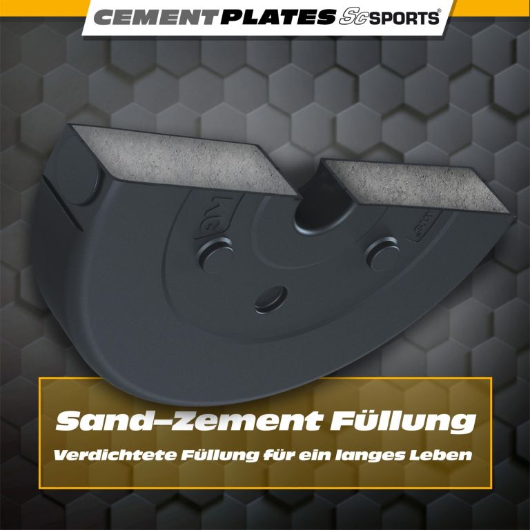 Disky sú vyplnené cementom a majú otvor s priemerom 30/31 mm, čím je zaručená kompatibilita s väčšinou tyčí. Sofistikované reliéfy a výstupky minimalizujú otáčanie a uľahčujú zdvíhanie diskov zo zeme. Ideálna voľba pre domáce cvičenie.