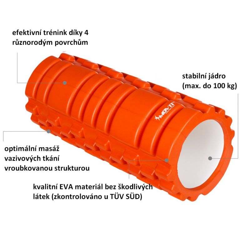Terapia sa cielene sústredí na zredukovanie či deaktivovanie permanentne natiahnutých svalových vlákien a na zabránenie trvalému skráteniu či chybnému použitiu svalov. Protišmykový a odolný povrchový materiál EVA je príjemný na dotyk a bez jedovatých škodlivých látok a nebezpečných zmäkčovadiel (testované v TÜV SÜD). Stabilné PVC jadro je možné zaťažiť až do hmotnosti 100 kg. Vďaka kompaktným rozmerom 33 x 14 cm a nízkej hmotnosti iba 800 g je MOVIT masážny valec ľahko prenosný a použiteľný kdekoľvek.