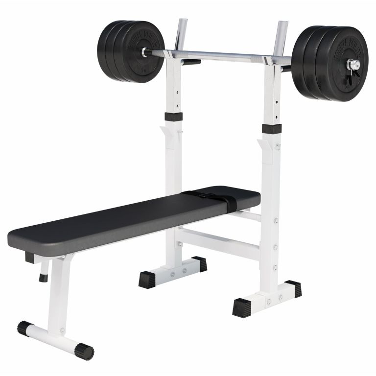 Praktická konštrukcia lavice ponúka päť polôh nastavenia stojana, sklopnú prednú nohu a bezpečnostný pás na nohy. Súčasťou je 120 cm činková tyč s pružinovými poistkami a šesť závaží po 5 kg s odolným plastovým povrchom. Údržba je jednoduchá, montáž zvládnete za chvíľu.