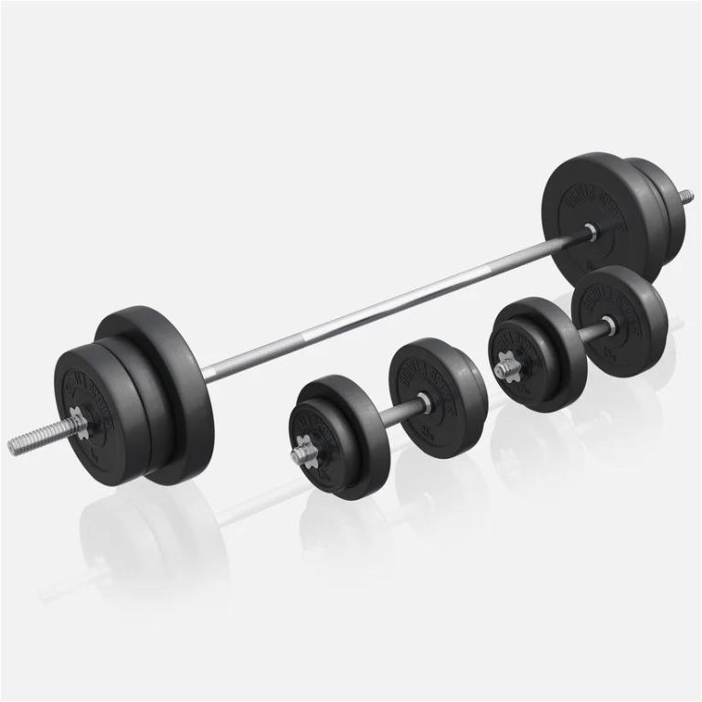 Robustná konštrukcia s nosnosťou 300kg poskytuje maximálnu stabilitu pri cvičení. Sada zahŕňa aj pogumované kotúče z cementovej zmesi, ktoré chránia podlahu. Tento variant je ideálny pre rekreačný aj náročnejší domáci tréning.