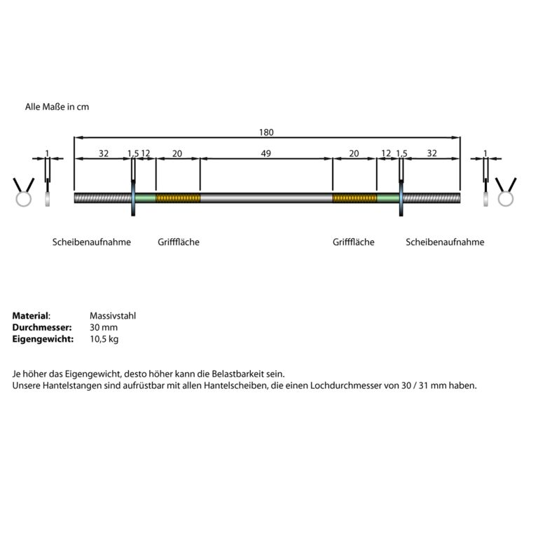 Posilňovacia tyč 180 cm, 30 mm, vrátane poistných uzáverov