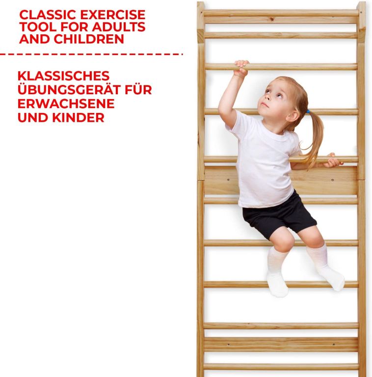 Na klasických rebrinách môžete realizovať príťahy, skracovačky a mnoho ďalších cvikov. Športové vybavenie z robustného borovicového dreva je pripevnené k stene a je ideálne na širokú škálu športových a fitness cvičení pre každú vekovú skupinu. Posilňuje sa nielen Vaša výdrž a vytrvalosť, ale aj svaly a koordinačné schopnosti.