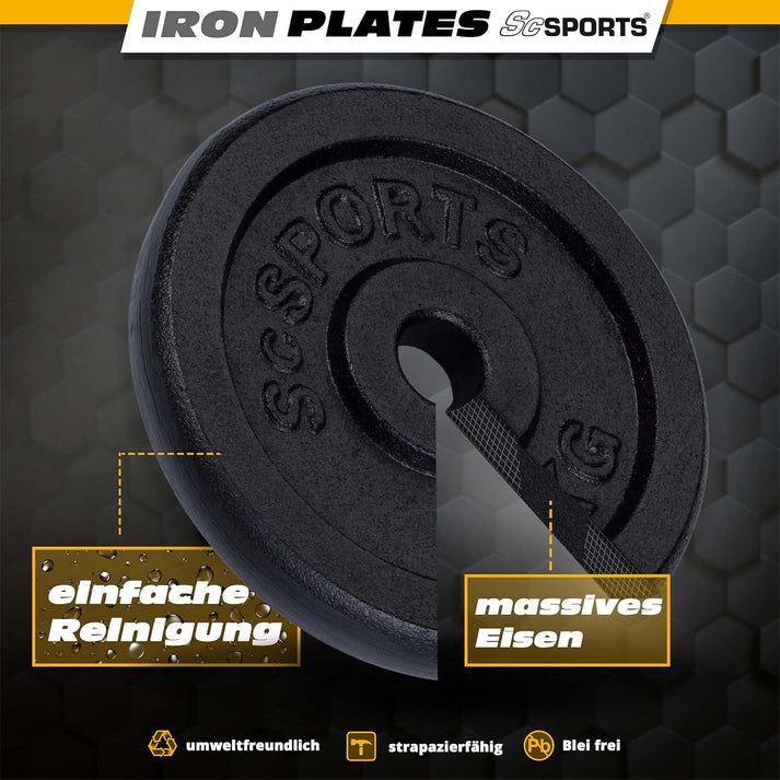 ScSPORTS liatinové kotúče 30/31 mm, sada 30 kg, čierne