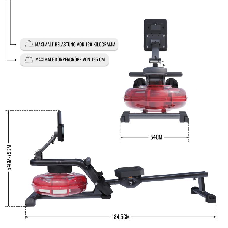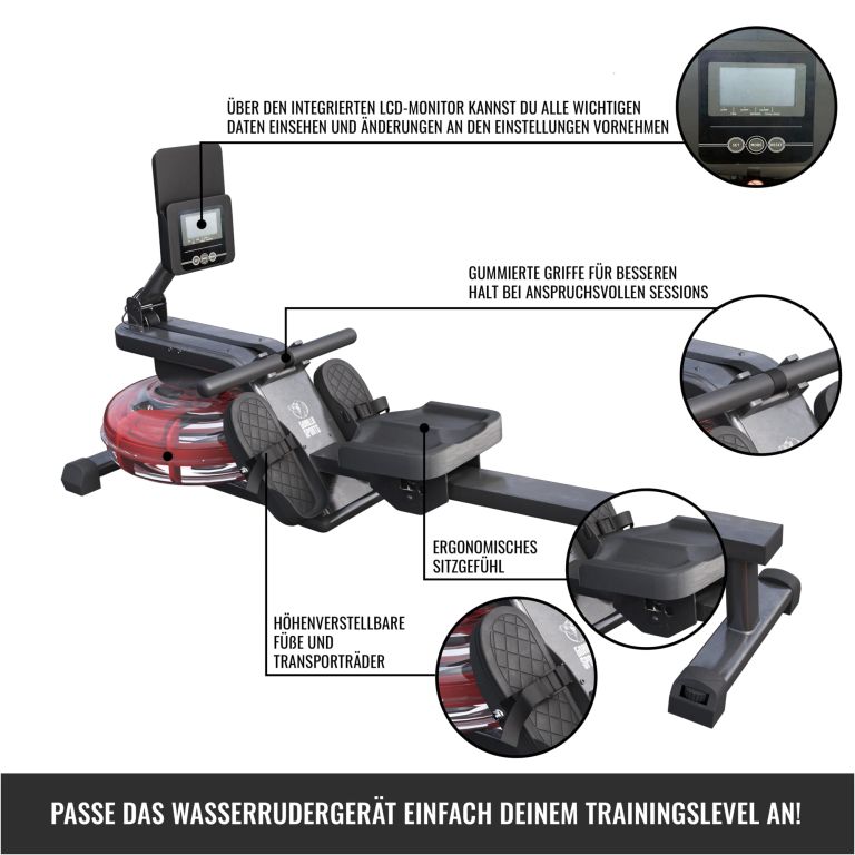 Veslovací trenažér s vodným odporom, skladacou konštrukciou, LCD displejom a 6 úrovňami záťaže pre efektívny tréning doma.